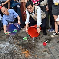 各國民黨總統初選參選人中,包含前台北縣長周錫瑋、郭台銘、孫文學校校長張亞中先後抵達,韓國瑜賀詞呈放桌上;另外國民黨主席吳敦義、前主席洪秀柱、新黨主席郁慕明、新黨大老許歷農、國民黨立委費鴻泰、陳學聖、童惠珍等政治人物也到現場致意。