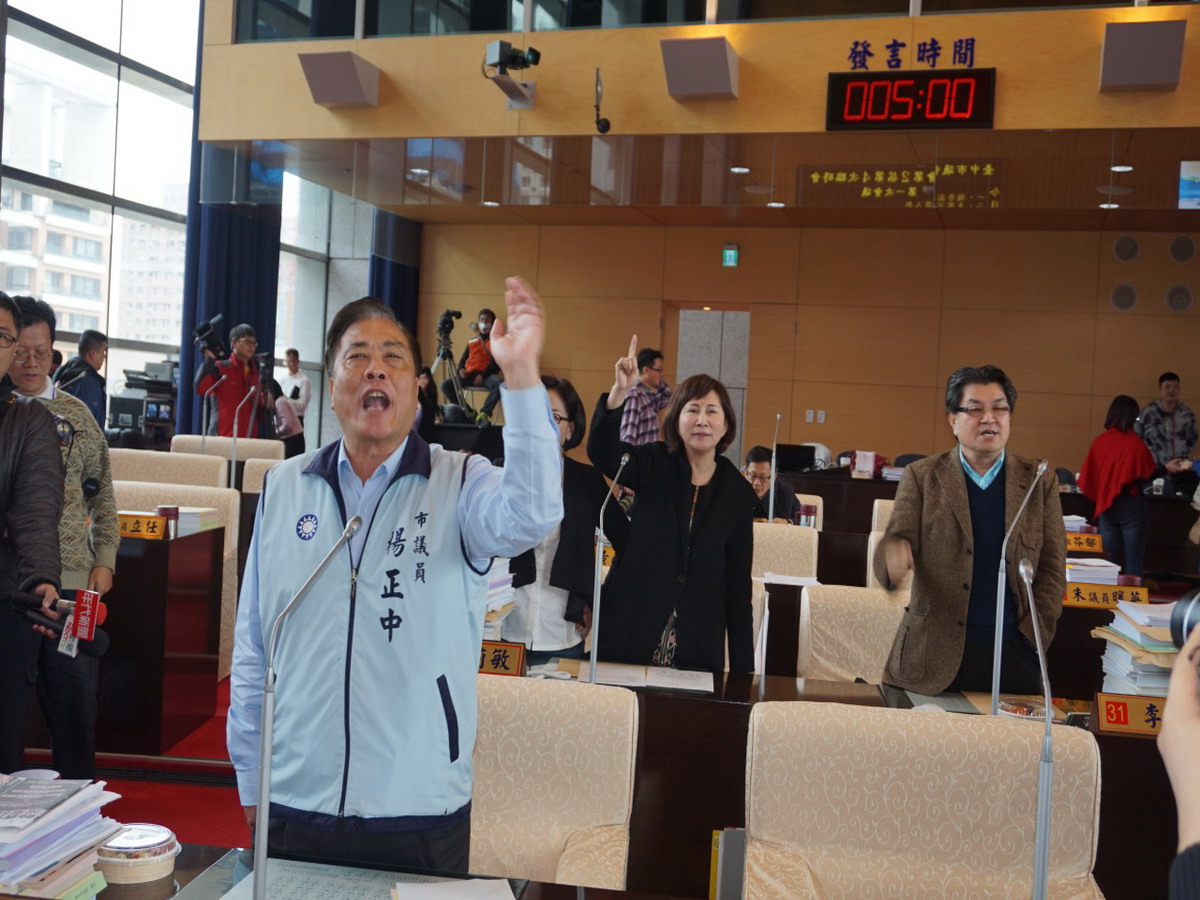 圖說:要預算不來開會?國民黨議員火大。國民黨議員楊正中、李中表示,選前林佳龍忙著到處輔選,還把總預算沒審完當成選舉議題操弄,恐嚇市民說台中市會斷炊,現在選舉結束議會開臨時會繼續審預算,林佳龍竟然不來開會,實在太離譜。林佳龍選前態度傲慢,選後更傲慢。國民黨議員在議事堂內氣得跳腳,民進黨議員則在一旁輕鬆吃便當,議長林士昌則說,市長林佳龍有跟他請假,理由是要北上參加民進黨中常會,周四應該就會來開會。藍營議員說,既然這樣,會也不必開了,林士昌則趁亂宣布散會,整天開會時間只有約5分鐘。議員黃馨慧表示,總統當選人蔡英文一再強調執政謙卑,但今日議會為審查預算召開臨時會,林市長卻請假,如此高傲、蠻橫態度,對於身為台中市長完全失格。